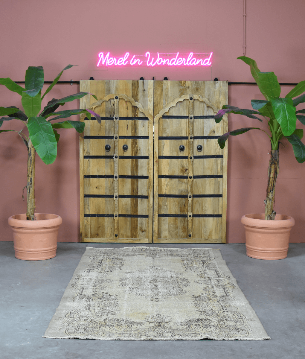 Vintage Teppich in einer Creme-Farbe. Eine echte Bereicherung für dein Wohnzimmer mit wunderschönen Akzenten! Handgefertigt in der Türkei, der Teppich verdient daher ein zweites schönes Leben. Hier und da sind einige Flecken zu sehen, aber das verleiht dem Teppich auch wirklich den Vintage-Look.