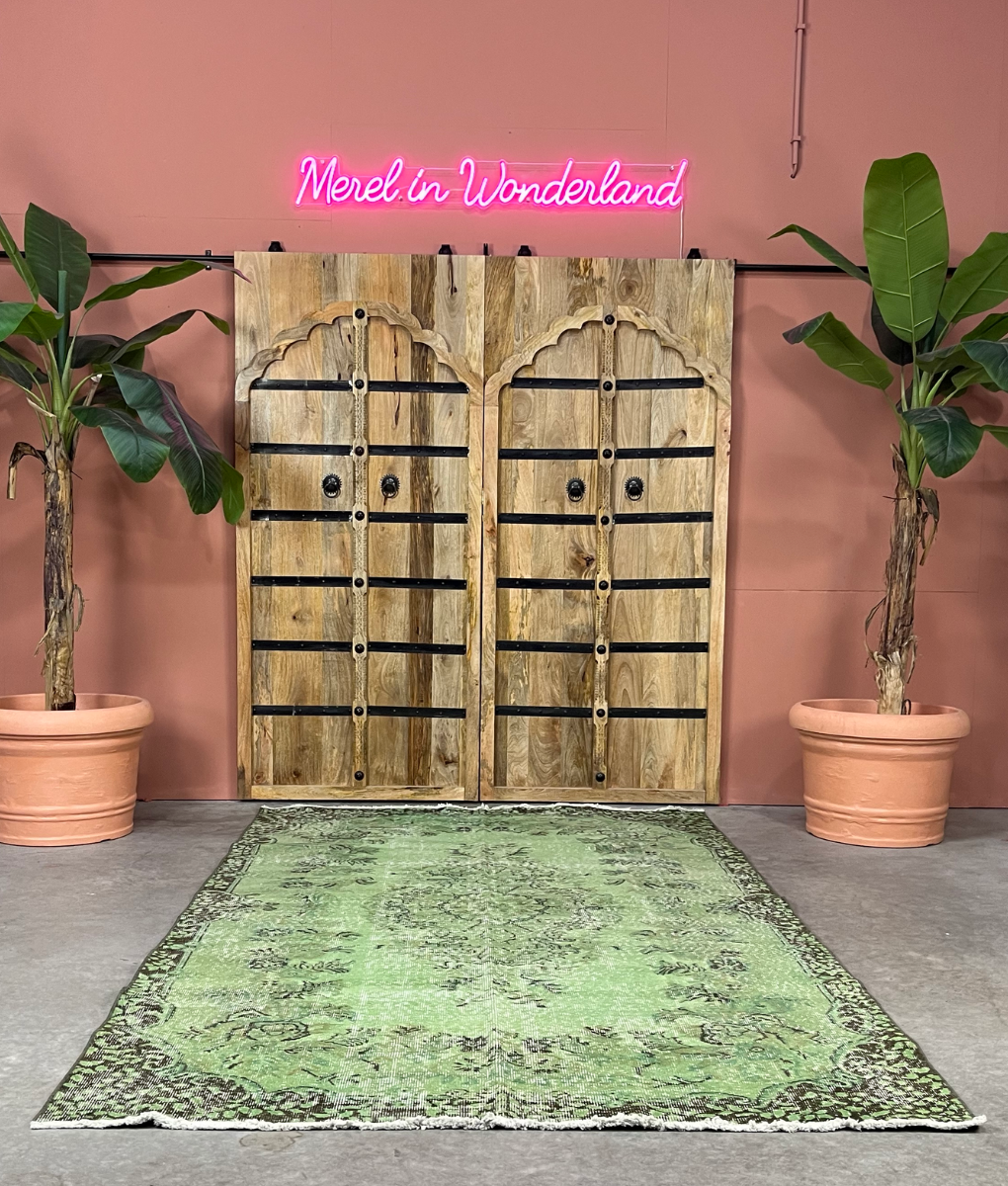 Froher Vintage-Teppich. Handgefertigt in der Türkei. Mit einer wunderschönen grünen Farbe und unglaublich vielen Details! Abmessungen: 163 x 278 cmLesen Sie mehr