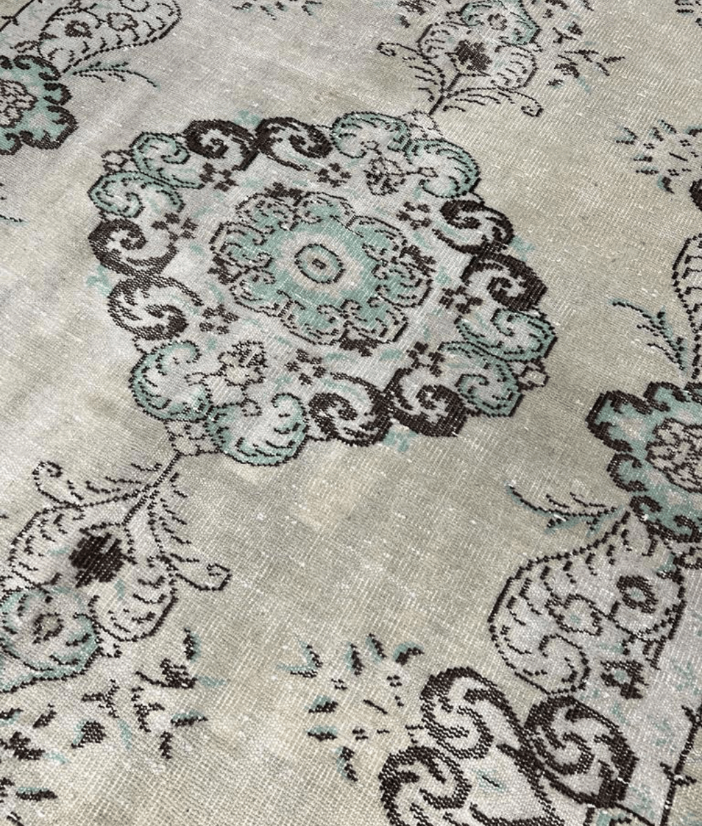 Ein wunderschöner Vintage-Teppich mit beigem Hintergrund mit dunkelbraunen und zartgrünen Details. Mit Liebe in der Türkei handgefertigt und verdient ein schönes zweites Leben. Es ist ein Kurzflor-Teppich, aber schön warm und weich an den Füßen. Der Teppich hat ein attraktives Kelimmuster und ist ein echter Hingucker in Ihrem Wohnzimmer!