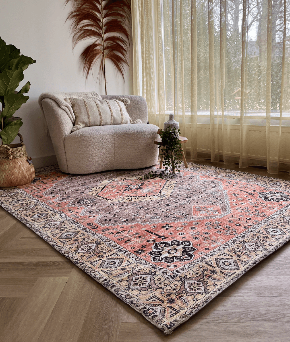 Fröhlicher Vintage-Look Teppich mit lebhaften Pastellfarben. Bringt richtig Leben in dein Wohnzimmer!Lesen Sie mehr