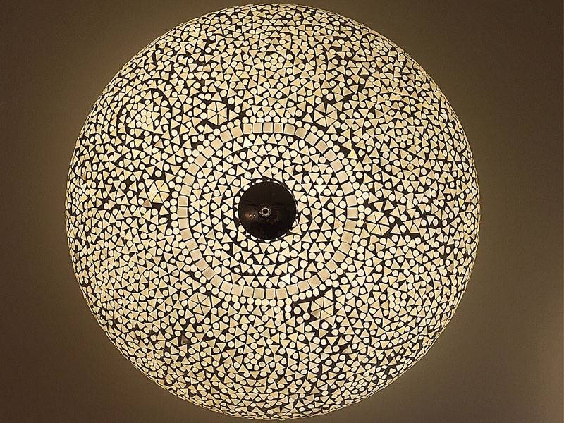 Eine sehr große Deckenlampe mit weißem Glasmosaik, eine schöne und ruhige orientalische Lampe.Lesen Sie mehr